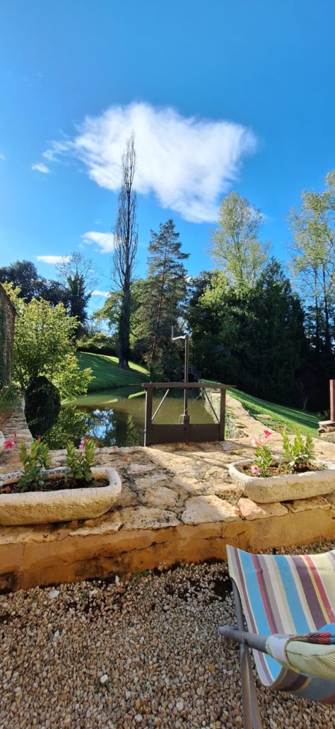 C’est à l’extérieur que Le Petit Moulin relève tout son charme et ses attraits nombreux … Faites le tour de la maison, qui regorge de petits coins pour se poser, admirer le paysage, prendre un café ou un apéritif. Une jolie terrasse est aménagée près du bassin en amont de la maison, agrémentée au loin d’un petit pont. La grande piscine, qui est commune avec le gîte du Moulin à Sel un peu plus loin, est sécurisée et complétée d’une plage avec des bains de soleil. Sur les jardins tout autour du gîte se trouvent un parc de jeux pour enfants, ainsi qu’une table de ping-pong. Un petit étang se trouve plus bas sur le terrain enherbé, où coule un ruisseau avec des petites cascades, les amateurs de pêche pourront apporter leur matériel et essayer de taquiner le poisson tranquillement installés au soleil avec vue sur le gîte. L’étang communal de Proissans se trouve juste à côté, au cas où les poissons se font rares ! Le Petit Moulin est un havre de paix et de bonheur où vous passerez de délicieuses vacances.